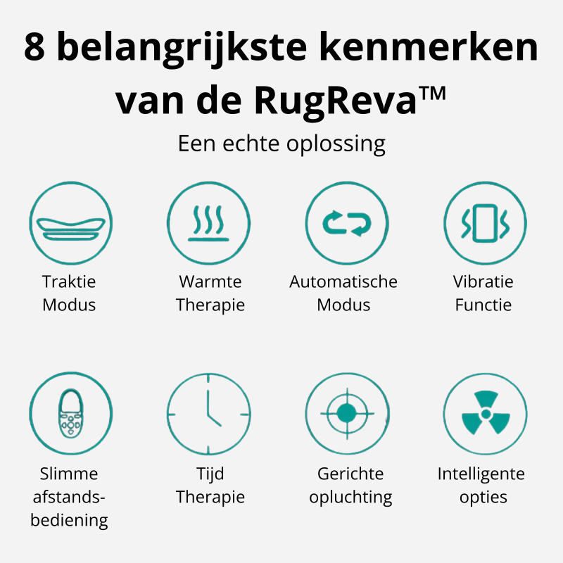 RugReva™ is een innovatief apparaat dat ontworpen is om rugpijn te verlichten, mobiliteit te herstellen en diepe ontspanning te bieden via geavanceerde therapieën.